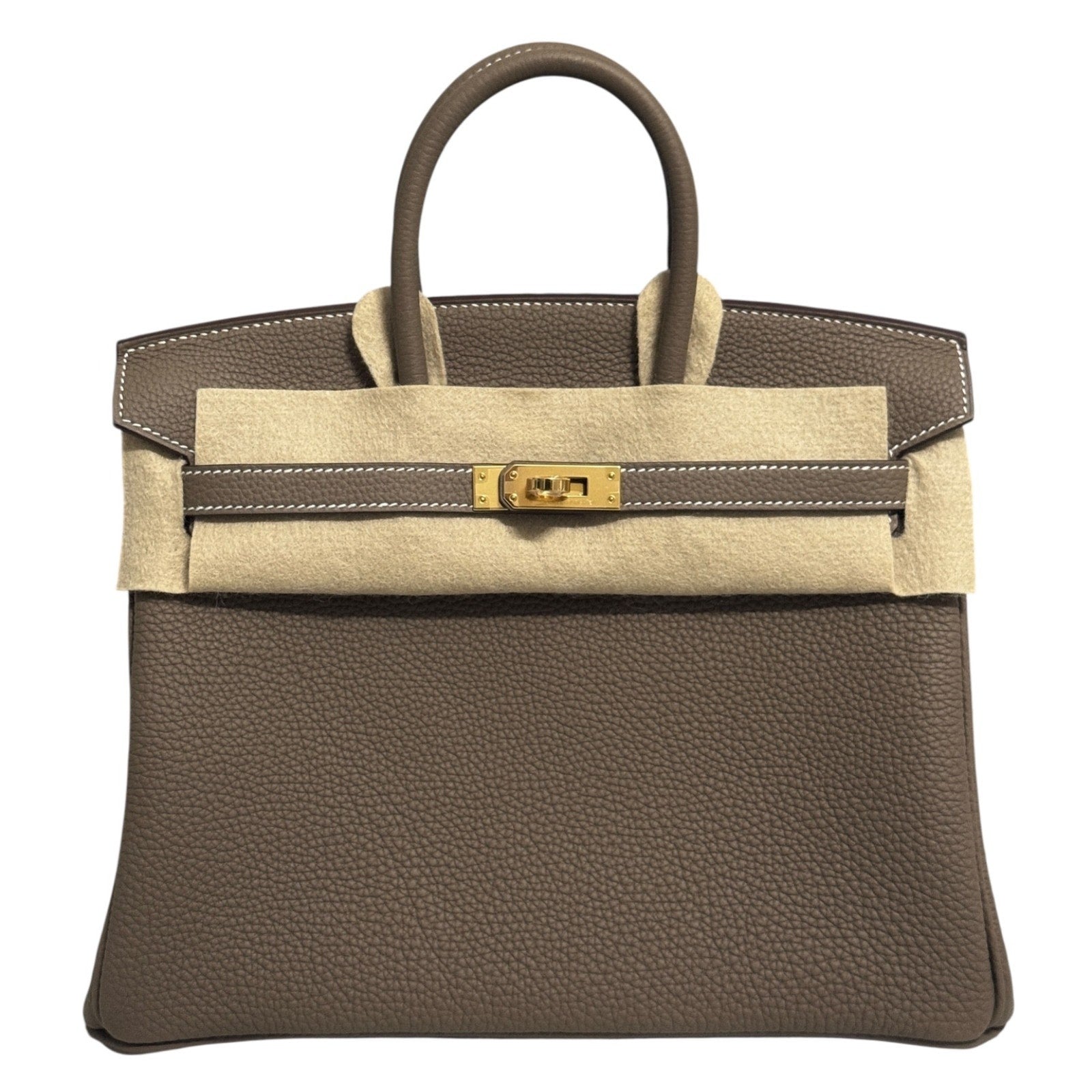 Hermes Birkin 25 Etoupe Gray Togo Leather Gold Hardware Handbag NEW