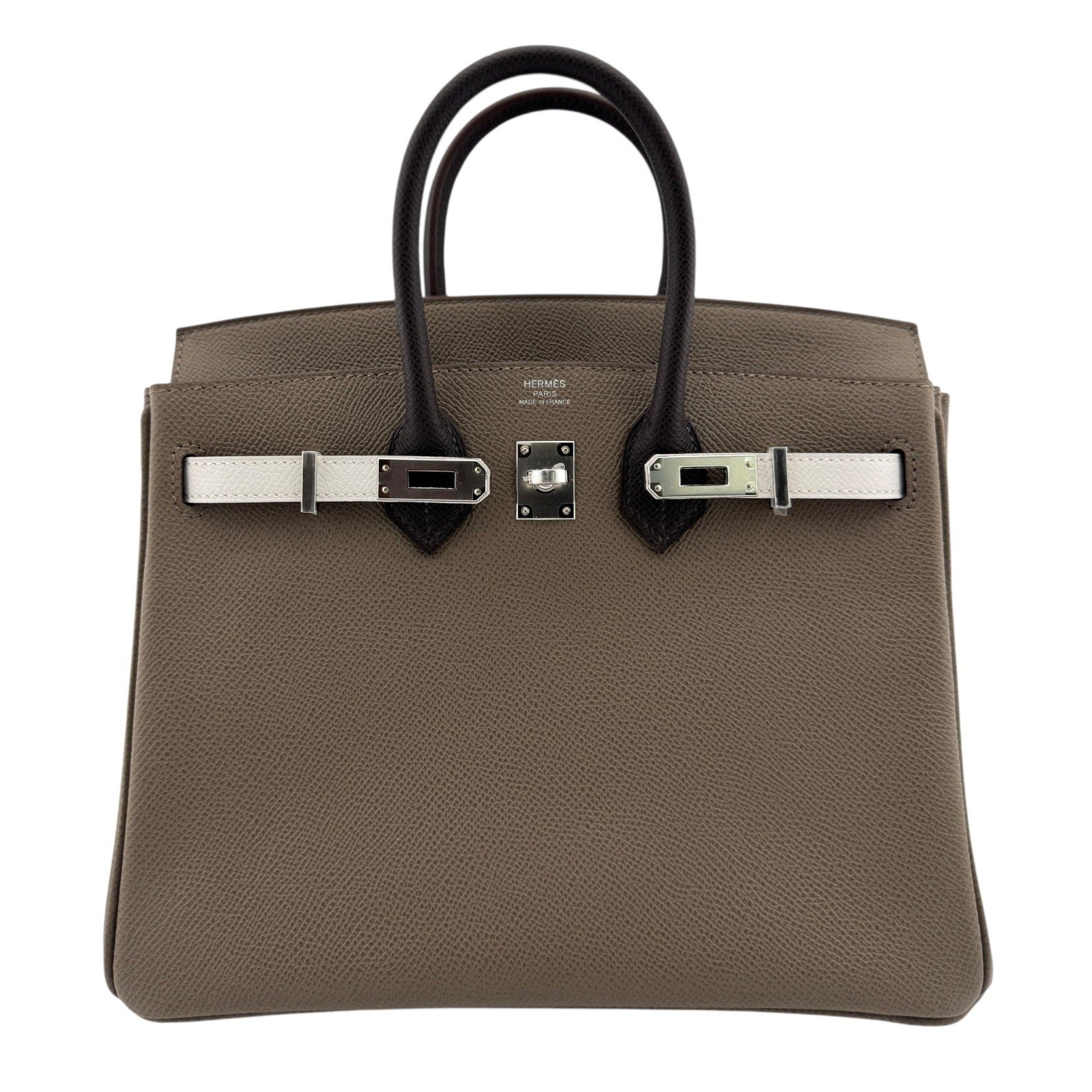 Hermes Birkin 25 Tri Color Etoupe Gris Pale Ebene Epsom Leather Palladium 2024
