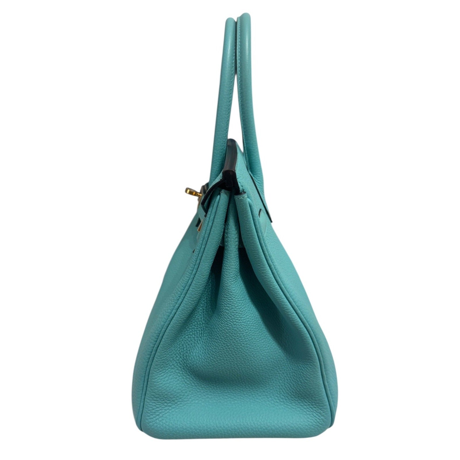 Hermes Birkin 30 Blue Atoll " Tiffany Blue" Togo Leather Complimented by Gold Hardware .