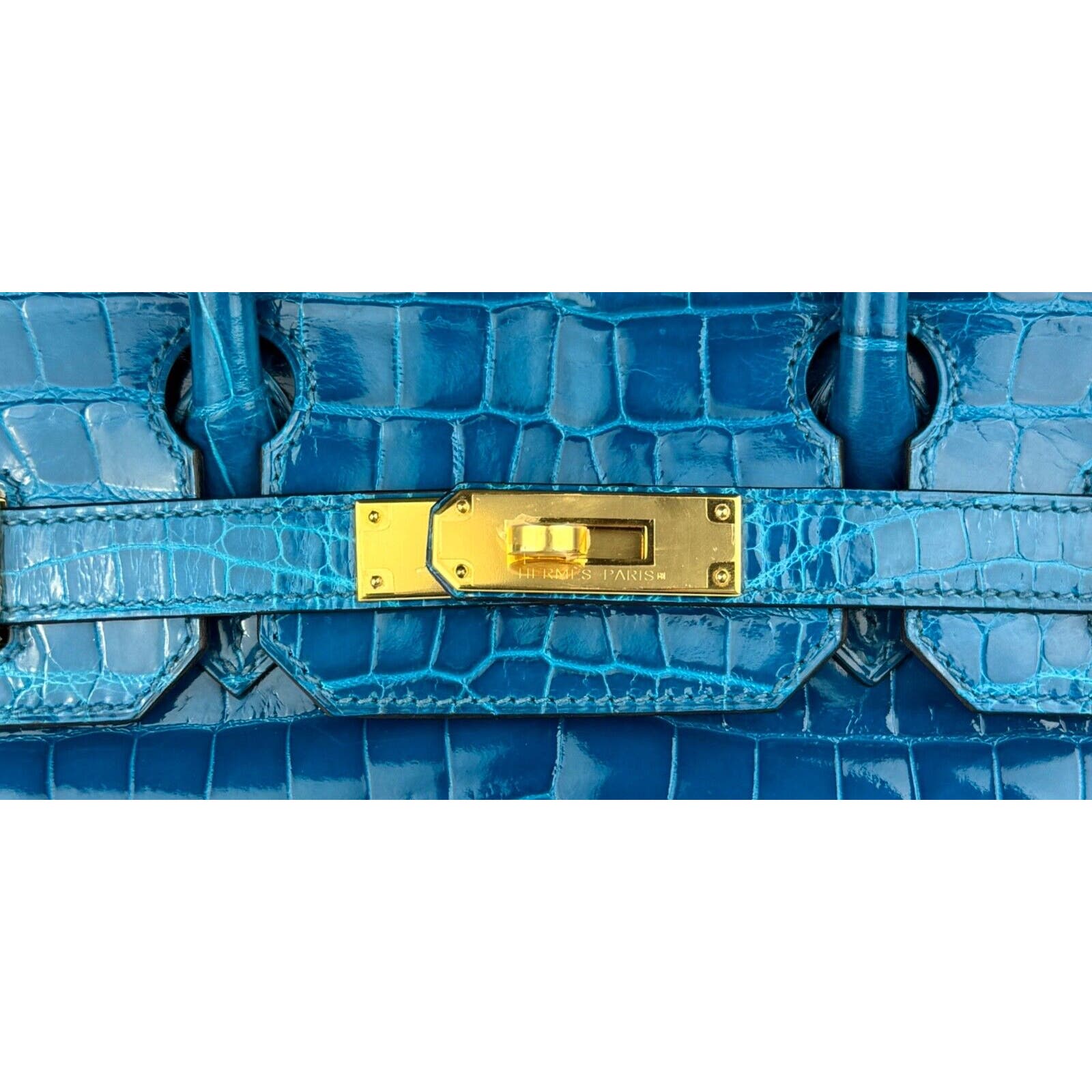 Hermes Birkin 30 Blue Izmir Crocodile Leather Gold Hardware RARE