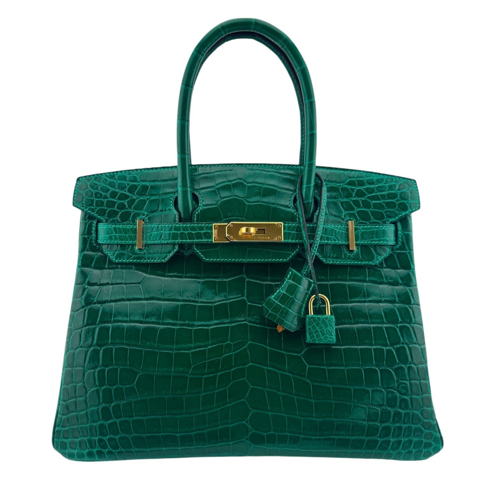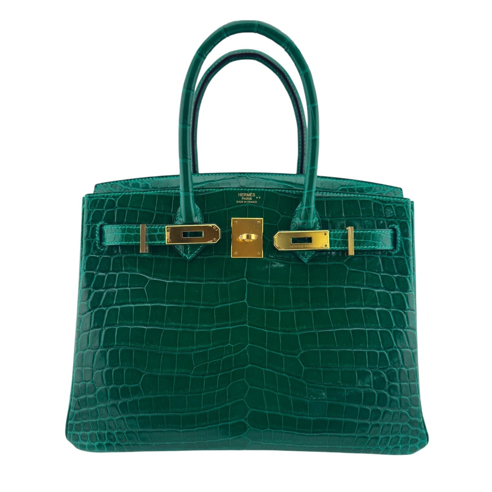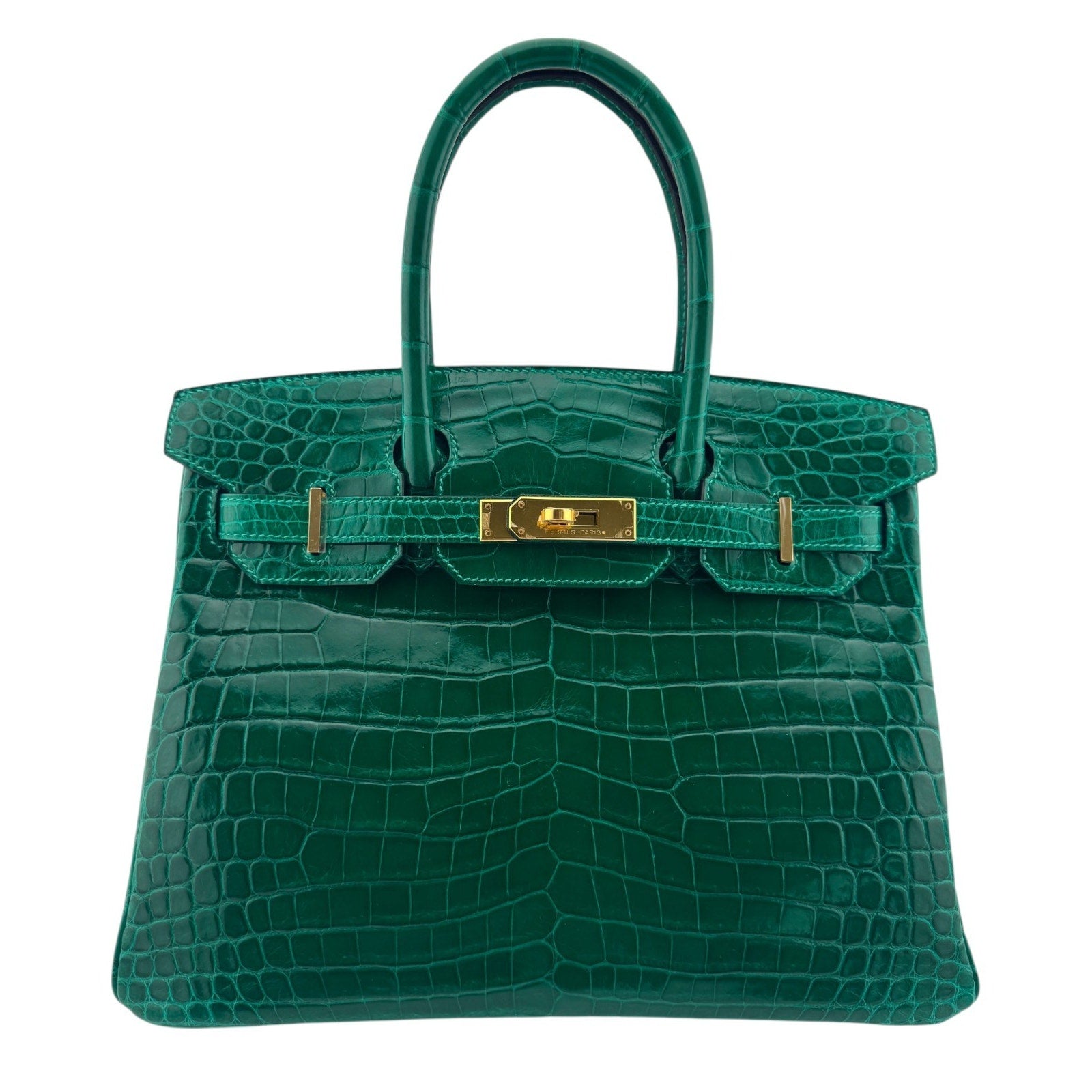 Hermes Birkin 30 Emerald Green Niloticus Crocodile Leather Gold Hardware Rare