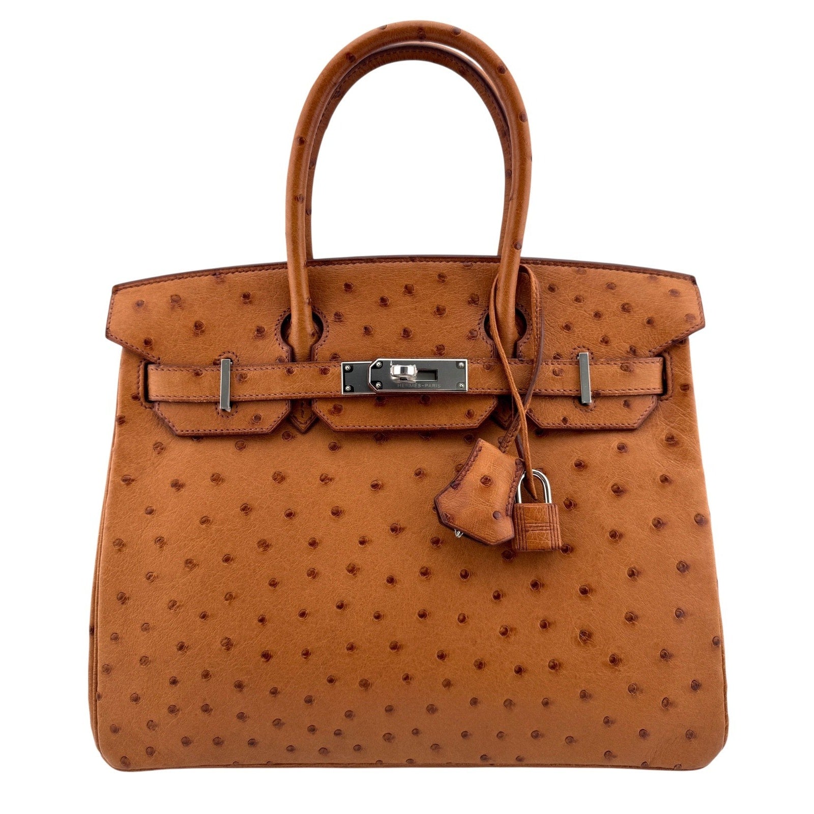 Hermes Birkin 30 Gold Camel Tan Ostrich Leather Palladium Hardware RARE