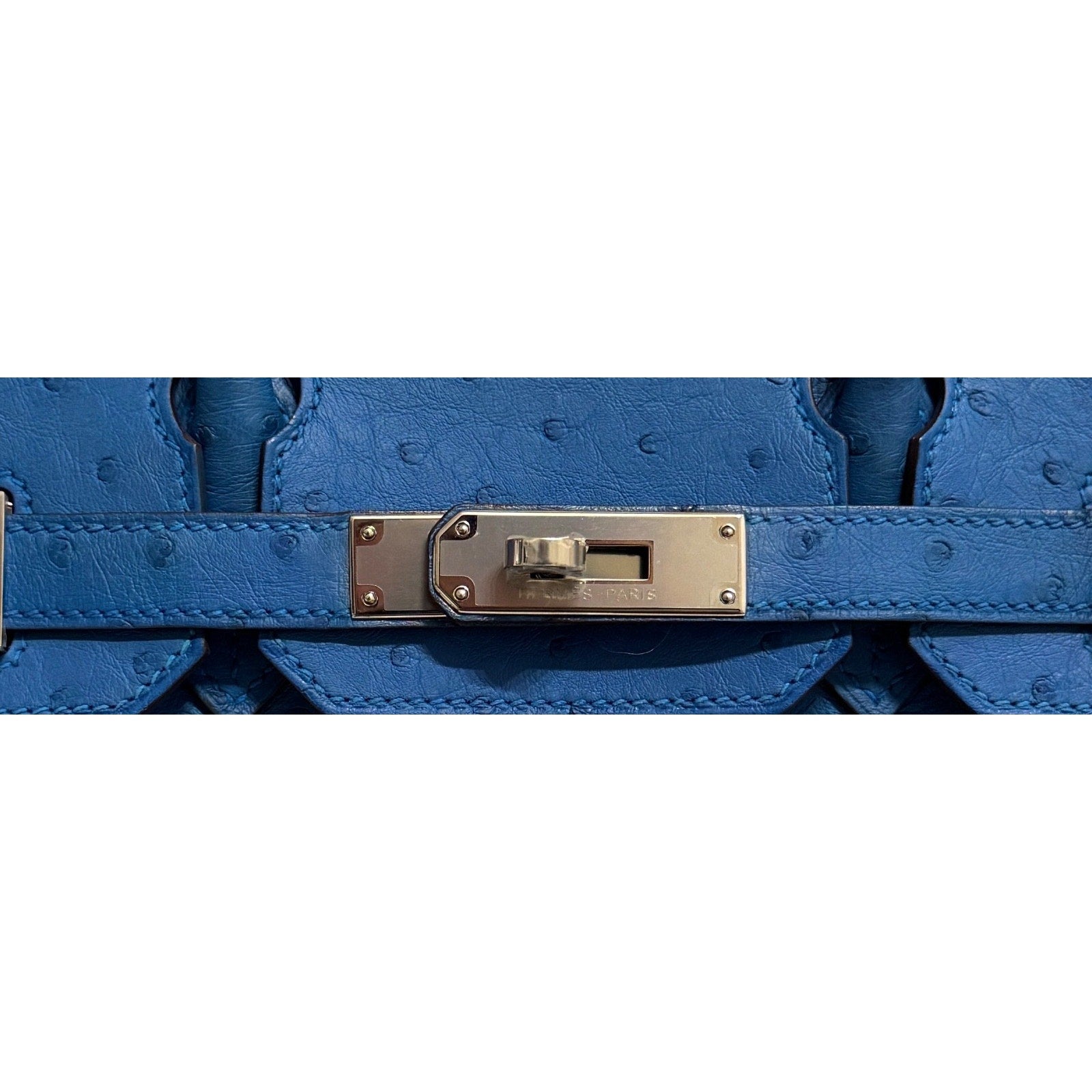 Hermes Birkin 30 Ostrich Blue Mykonos Leather Palladium Hardware RARE