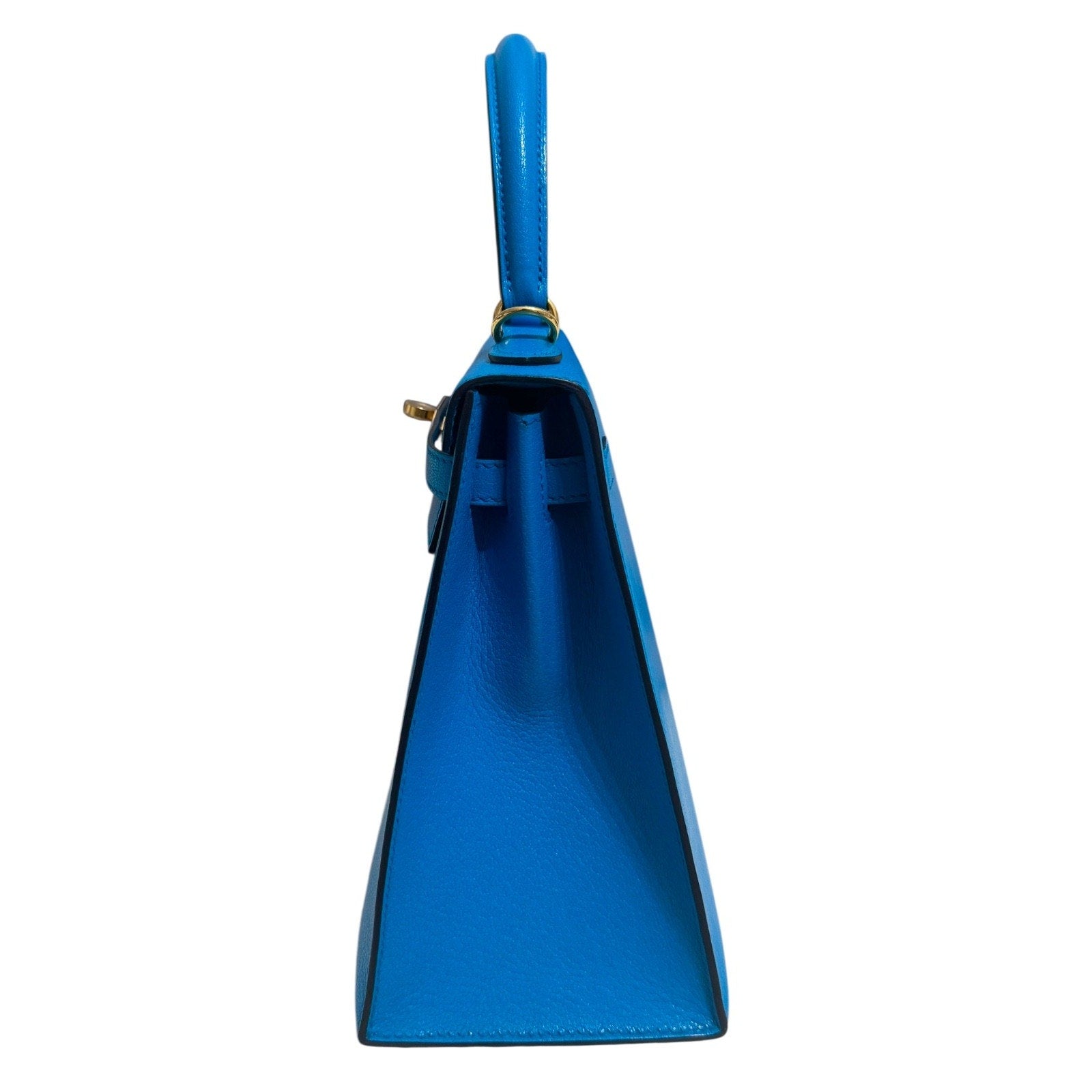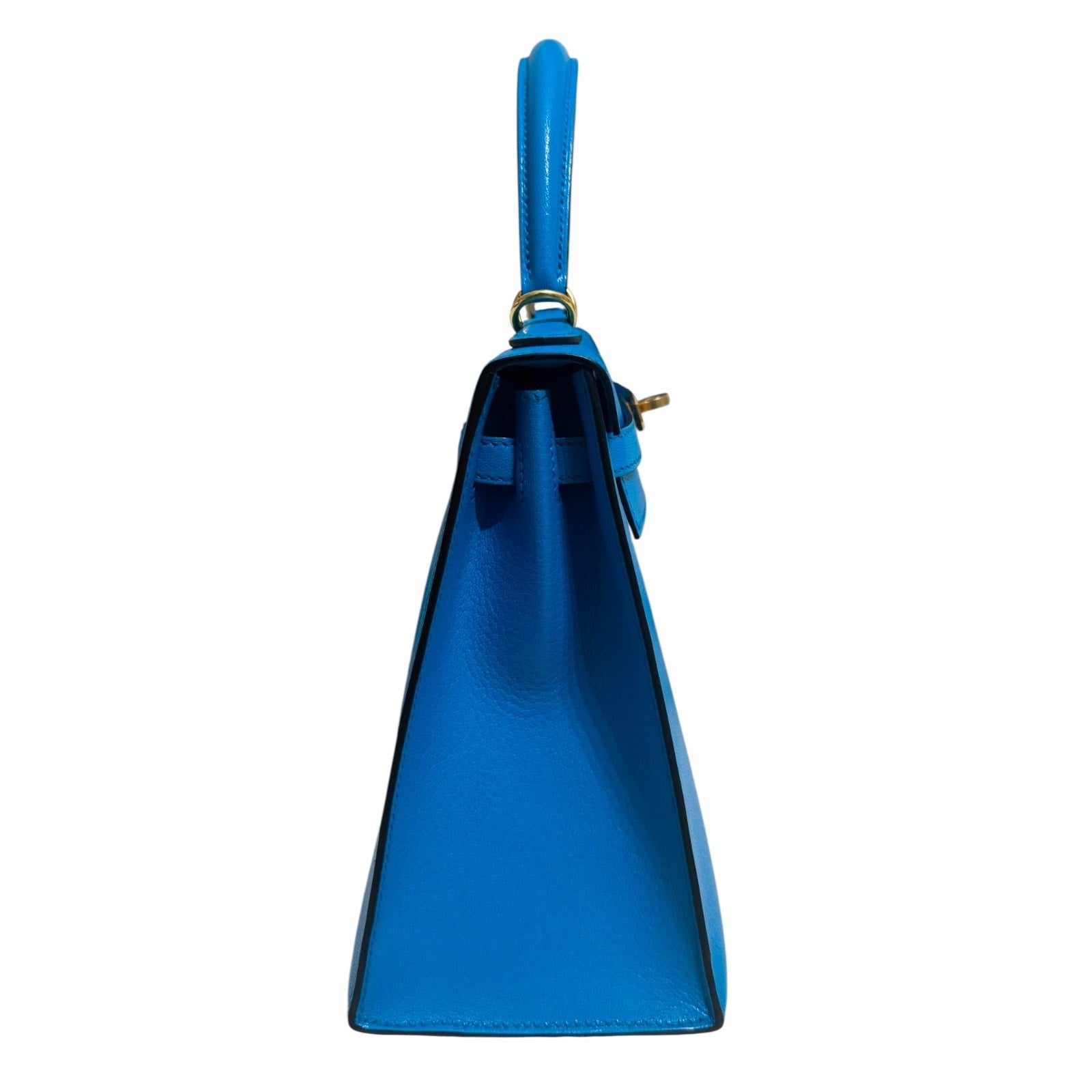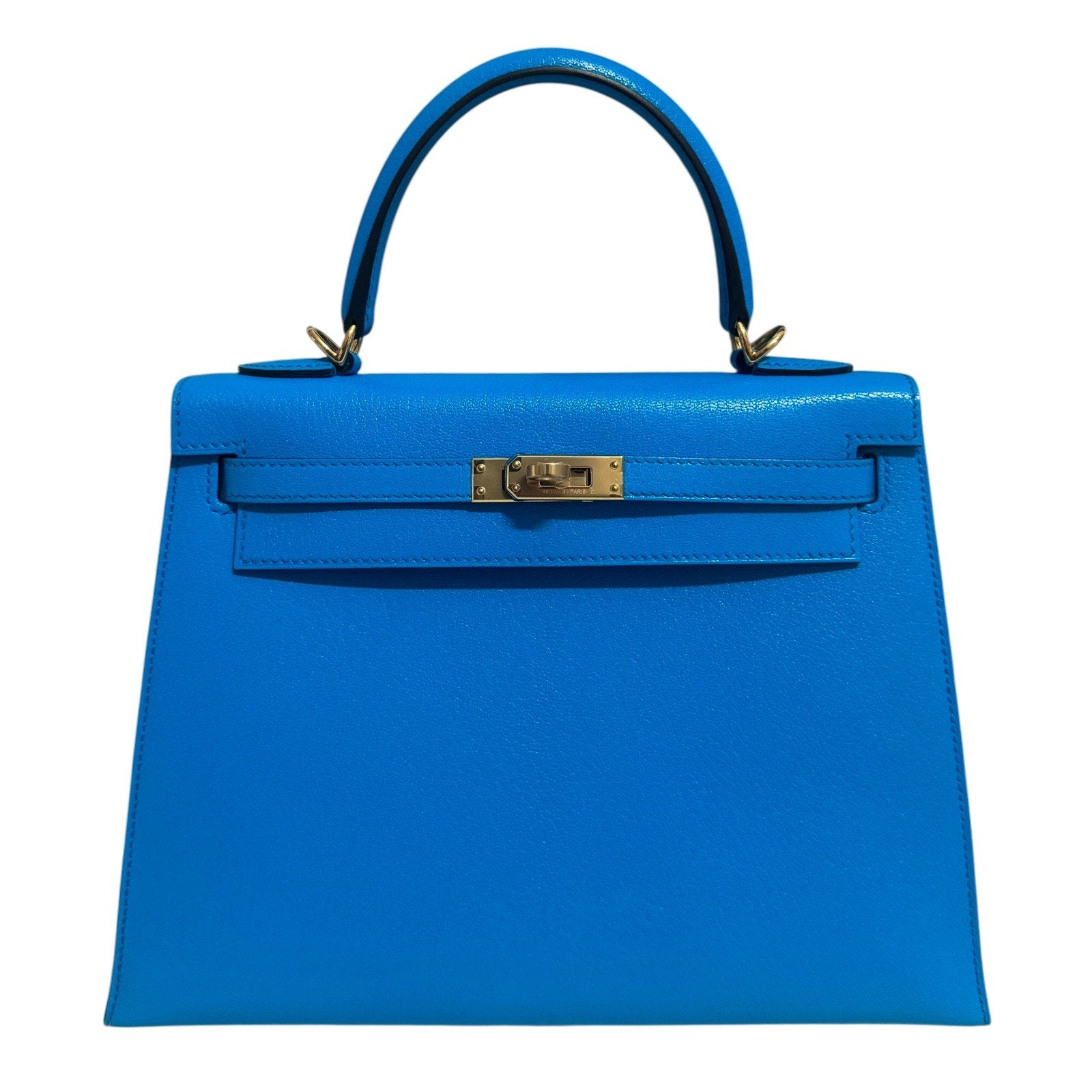 Hermes Kelly 25 Sellier Blue Frida Bleu Chevre Chamkila Leather Gold Hardware