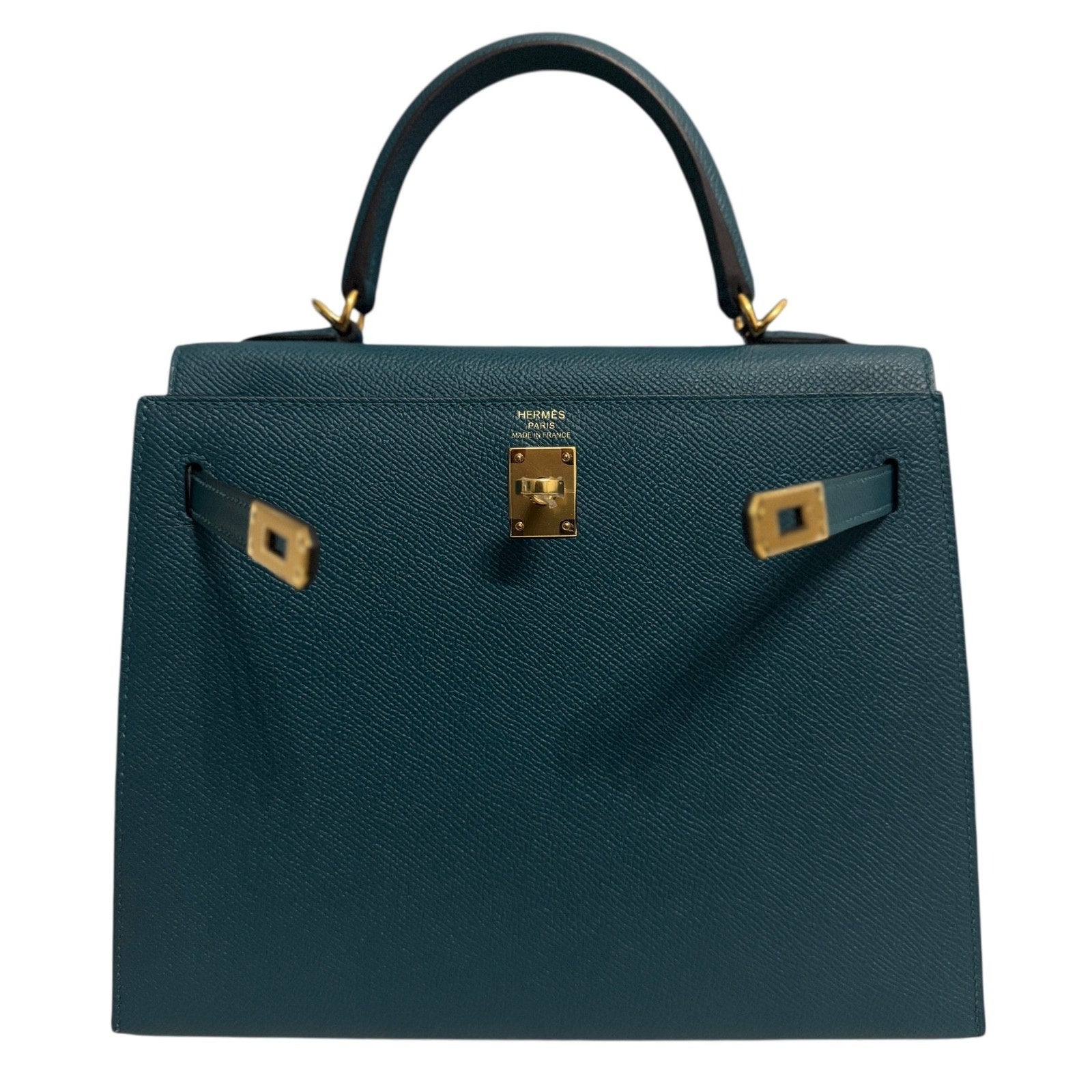Hermes Kelly 25 Sellier Vert Bosphere Green Blue Epsom Leather Gold Hardware