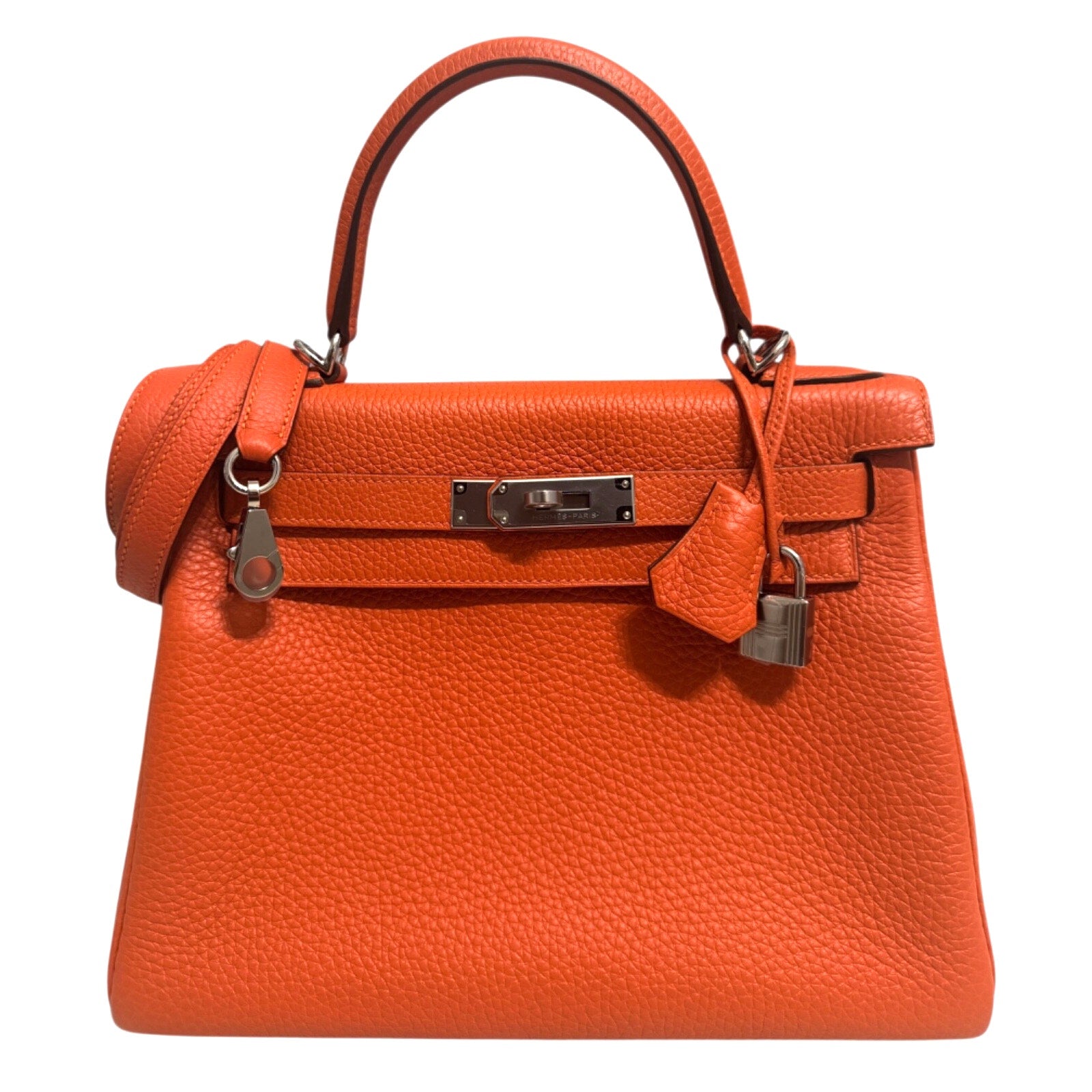 Hermes Kelly 28 Orange Togo Leather Palladium Hardware