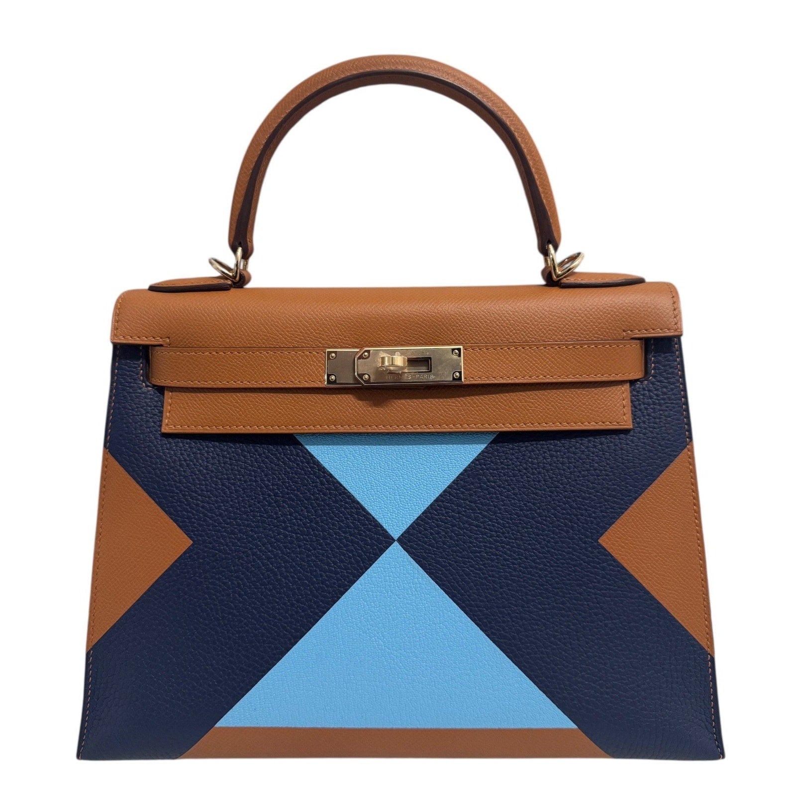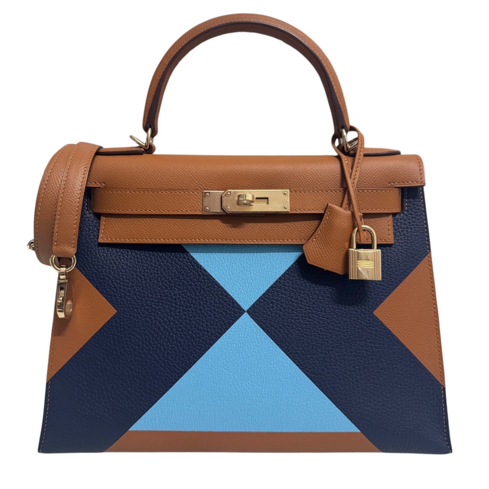 Hermes Kelly 28 Sellier Limited Kellygraphie Gold, Blue Celeste, Indigo Epsom