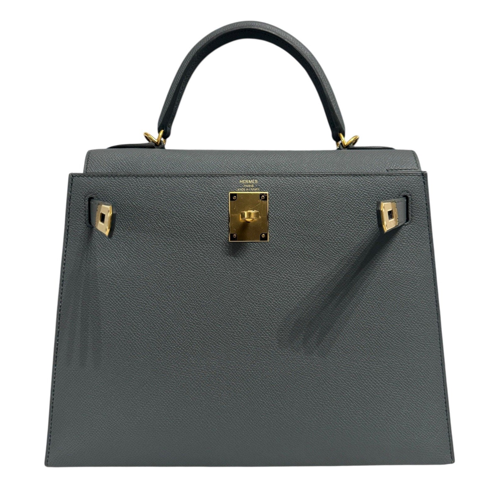 Hermes Kelly 28 Sellier Vert Amande Gray Green Epsom Leather Gold Hardware RARE