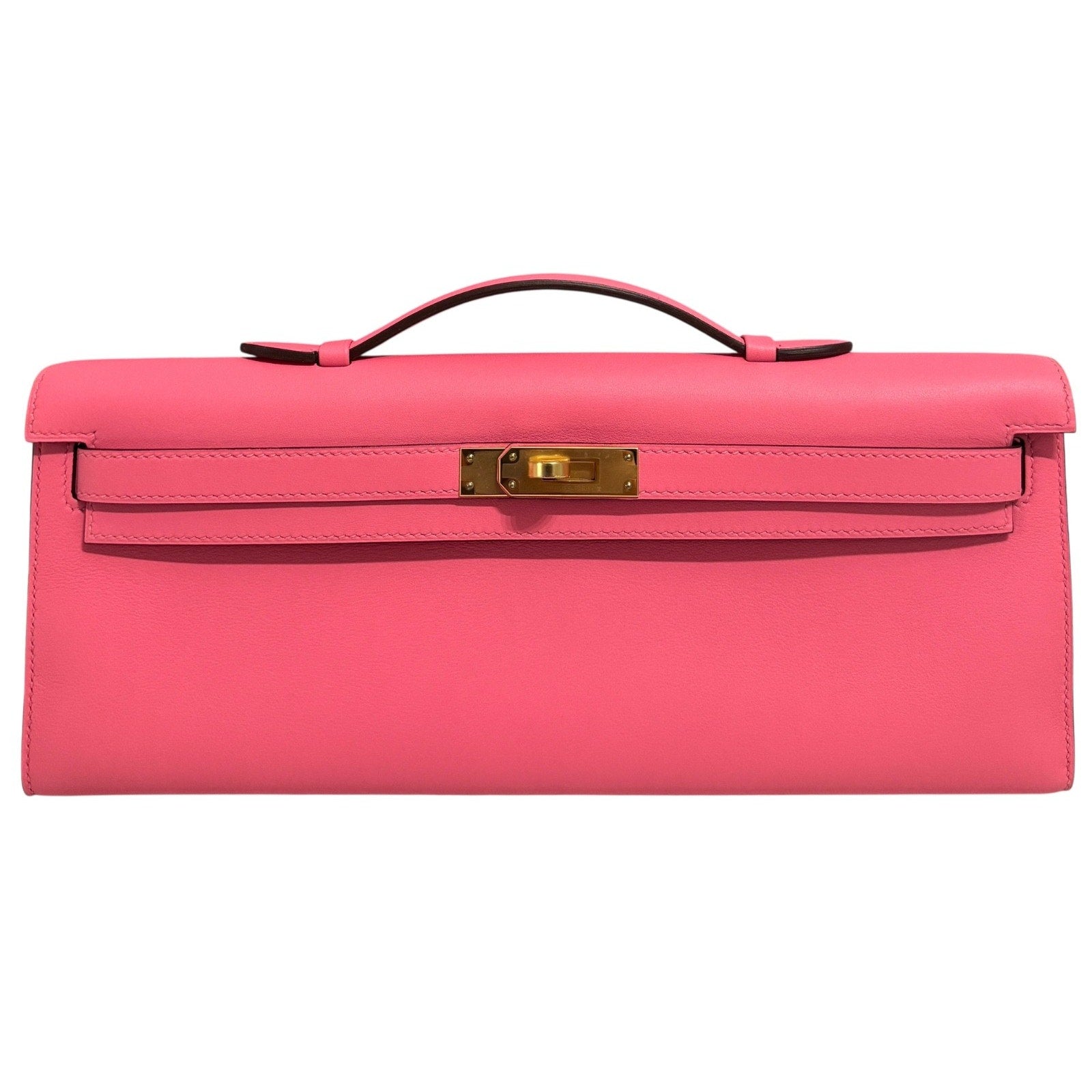Hermes Kelly Cut Clutch Rose Azalee Azalea Pink Swift Leather Gold Hardware RARE