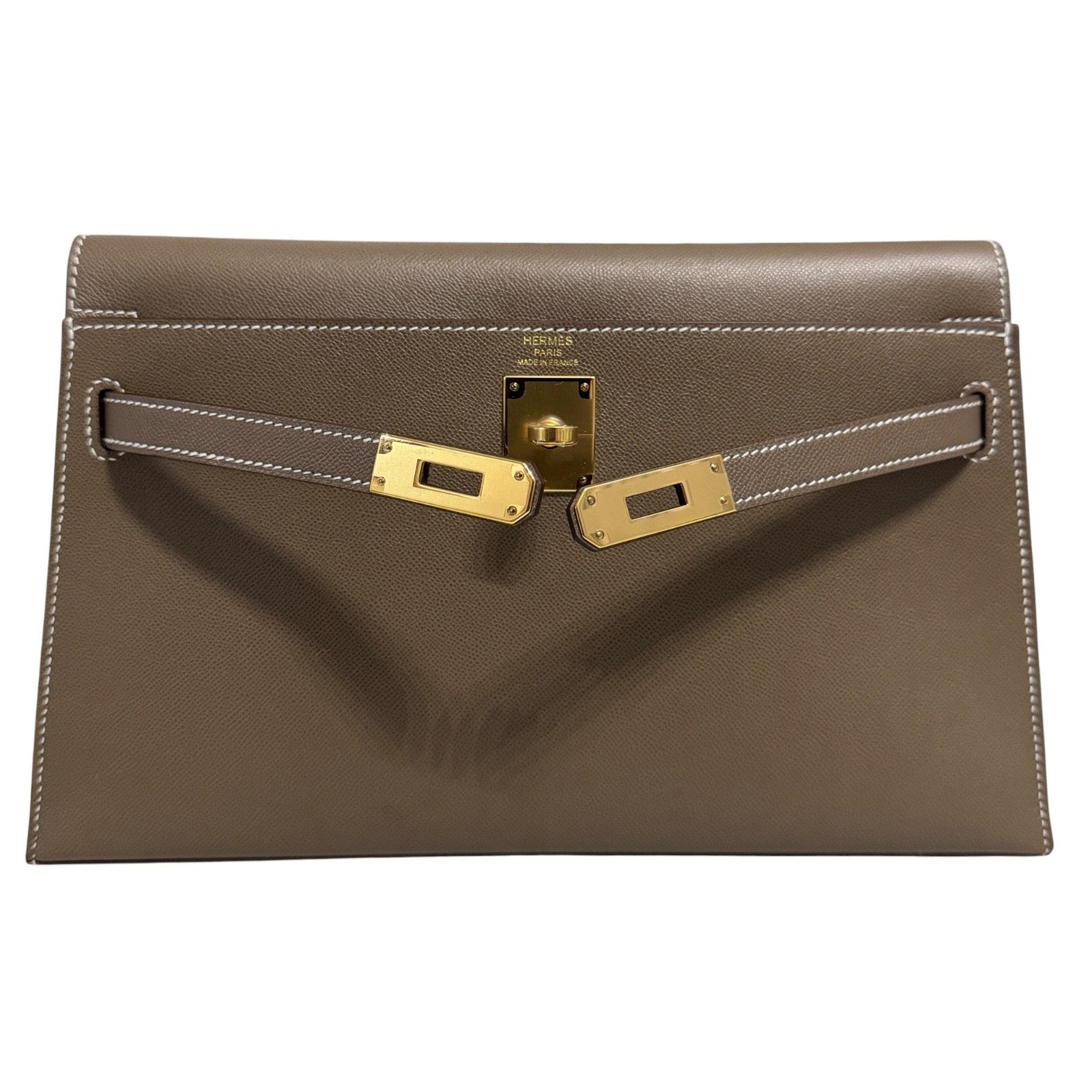 Hermès Kelly Elan Etoupe Gray Madame Leather Gold Hardware Clutch Shoulder Bag