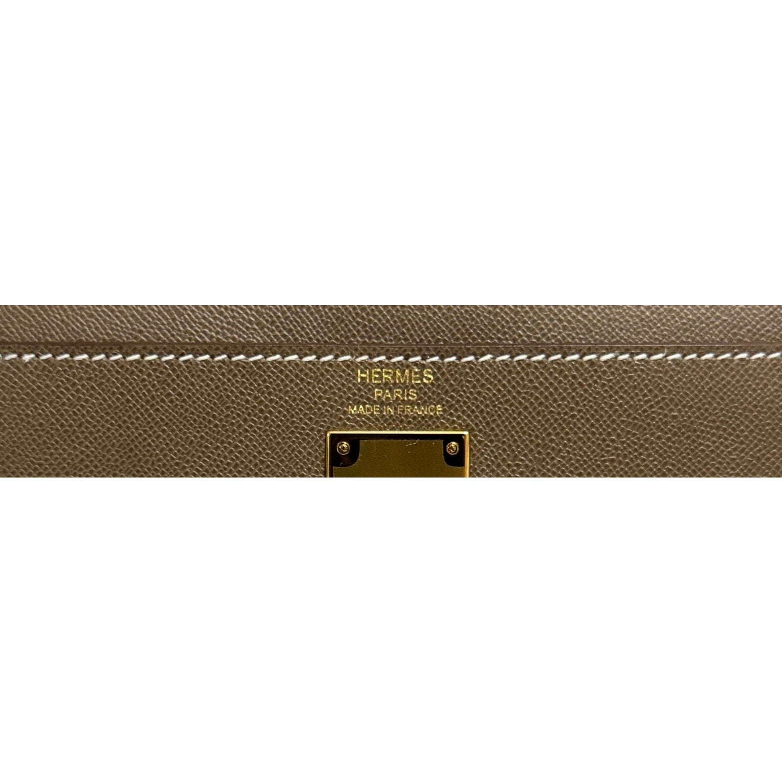 As New RARE Most Coveted Hermes Kelly Elan Etoupe Madame Leather Complimented by Gold Hardware.