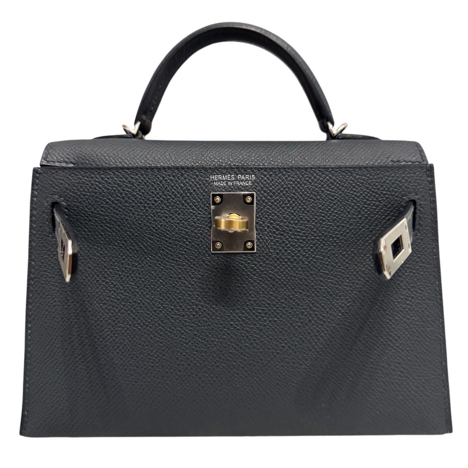 Rare and Most Coveted Hermes Mini Kelly 20 Gris Misty Epsom Leather Complimented by Electrum " Gold & Palladium" Hardware.