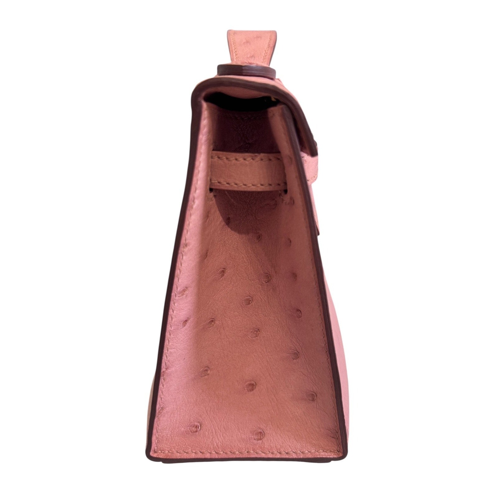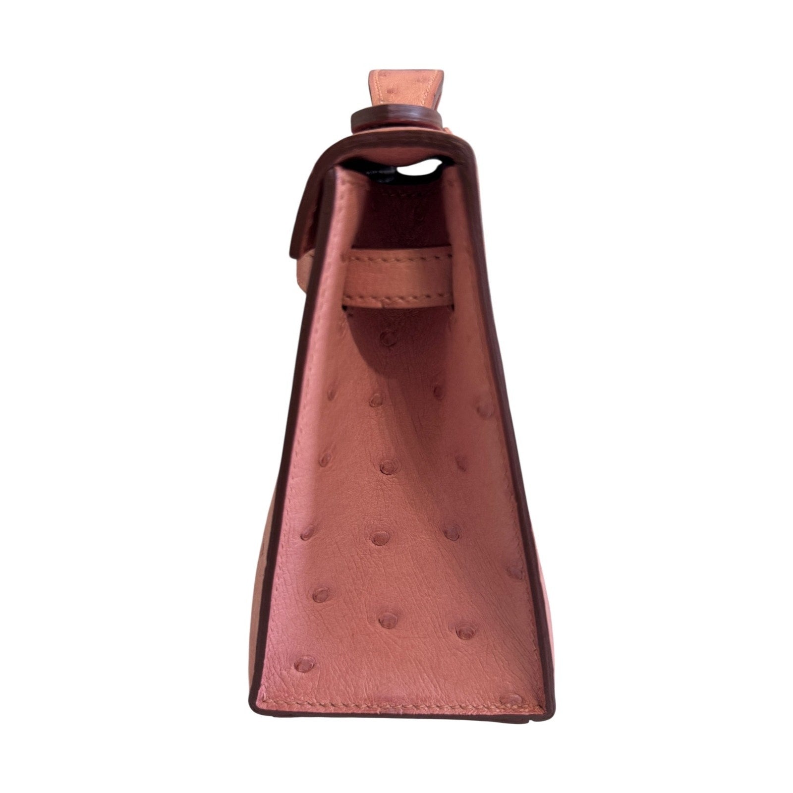 Hermes Kelly Pochette Terre Cuite Pink Ostrich Leather Palladium Hardware