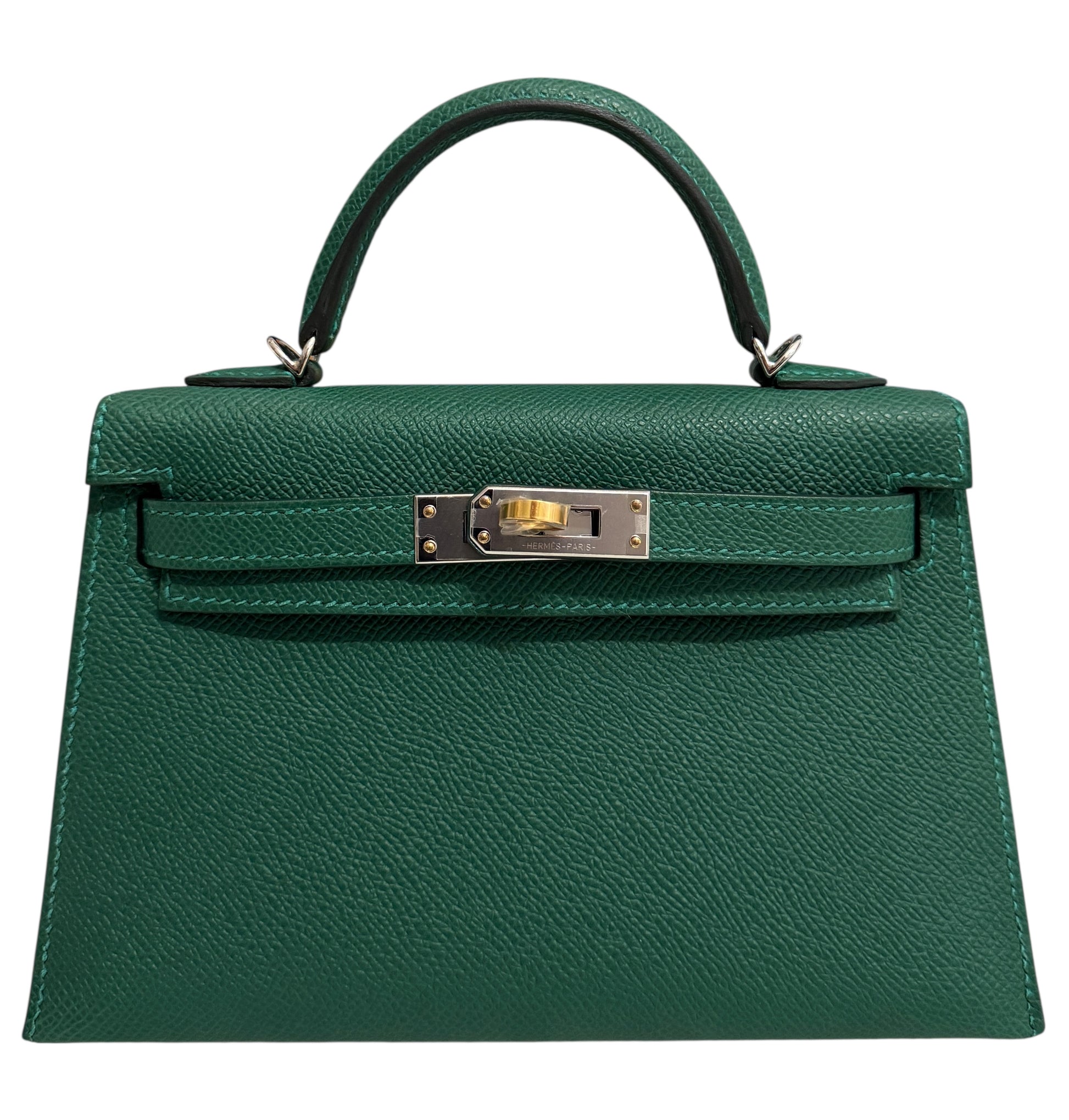 Rare and Most Coveted New Hermes Mini Kelly 20 Vert Vertigo Epsom Leather Complimented by Electrum Hardware